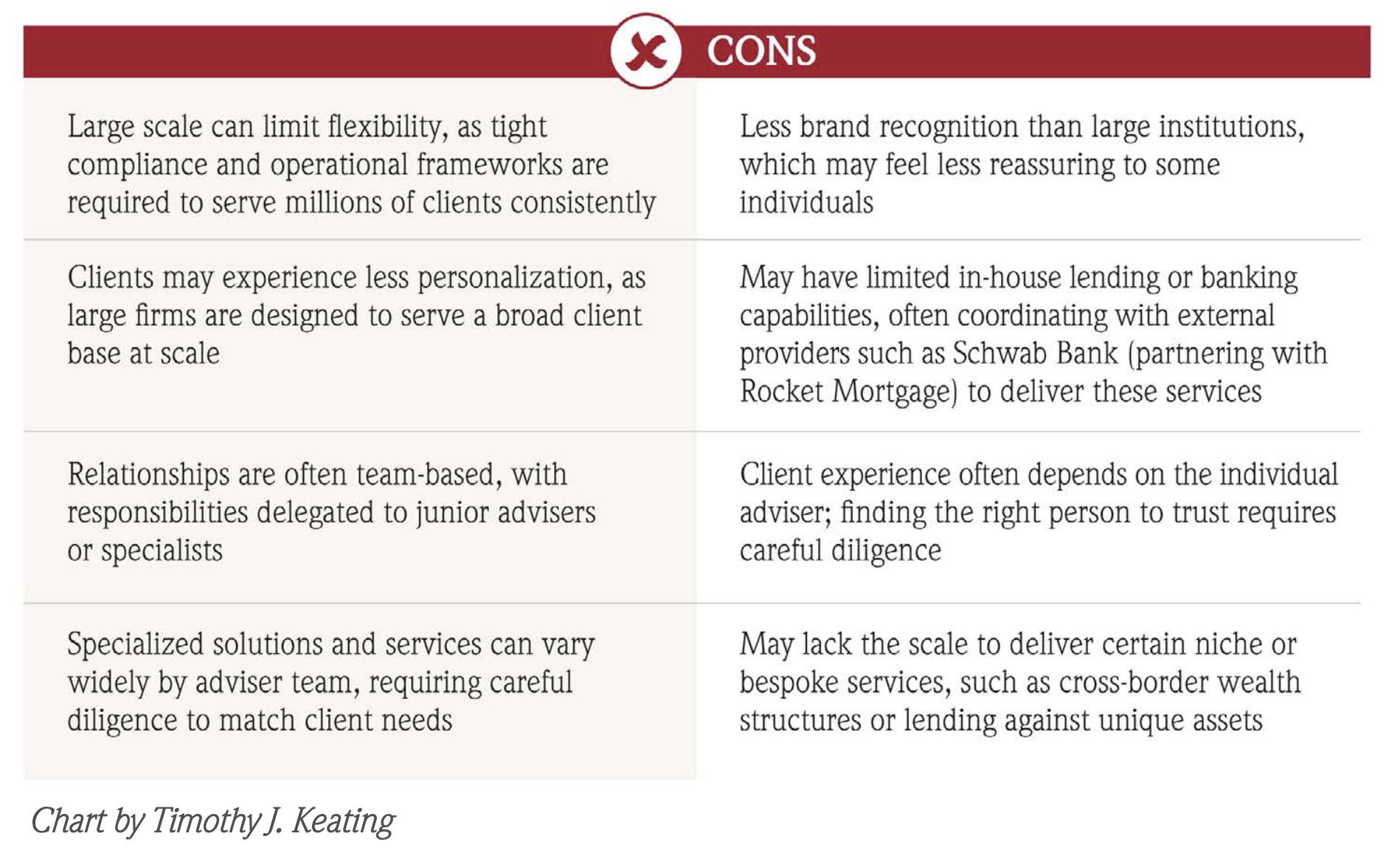 Reality: Institutional research is widely available at both large firms and RIAs. The differentiator is how effectively an adviser applies it to a client's situation.