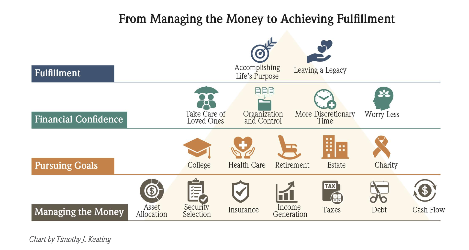 The following diagram illustrates this hierarchy of financial needs, starting at the bottom with managing the money and culminating in long-term fulfillment.